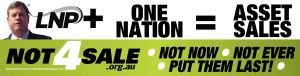 One Nation leave asset sales on the table in hung parliament negotiations The Not4Sale campaign says One Nation have shown their hand by leaving asset sales on the negotiating table in the eventuation of a hung parliament. One Nation leader Steve Dickson listed five “deal breaking” policies to Fairfax Media he would demand support for from […]